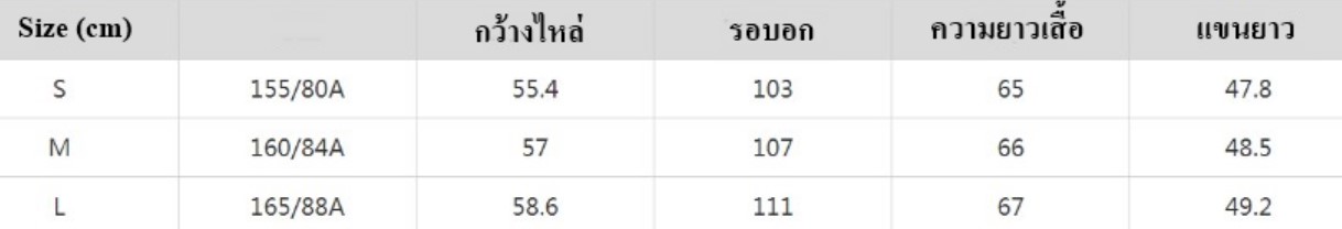 ** ควรเลือก Size ที่มีขนาดใหญ่กว่าตัวนะคะ เผื่อความ error ของช่างด้วยนะคะ